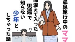 CG・イラスト 温泉旅行中のママ間違えて入った男湯で知らない少年としちゃった話
